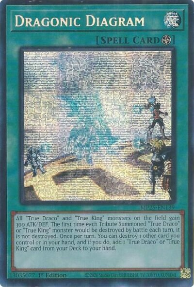 All “True Draco” and “True King” monsters on the field gain 300 ATK/DEF. The first time each Tribute Summoned “True Draco” or “True King” monster would be destroyed by battle each turn, it is not destroyed. Once per turn: You can destroy 1 other card you control or in your hand, and if you do, add 1 “True Draco” or “True King” card from your Deck to your hand.