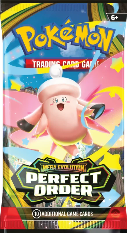Secret Powers Awaken! The pulse of the city beats in sync with the Pokémon and people who call it home—and preserving the order of it all is Mega Zygarde ex, the Legendary Pokémon who embodies strength in numbers. With threatening forces held at bay, peaceful days are ahead for the city’s residents, including Pokémon like Mega Clefable ex, Mega Starmie ex, and Meowth ex, in the Pokémon TCG: Mega Evolution—Perfect Order expansion.