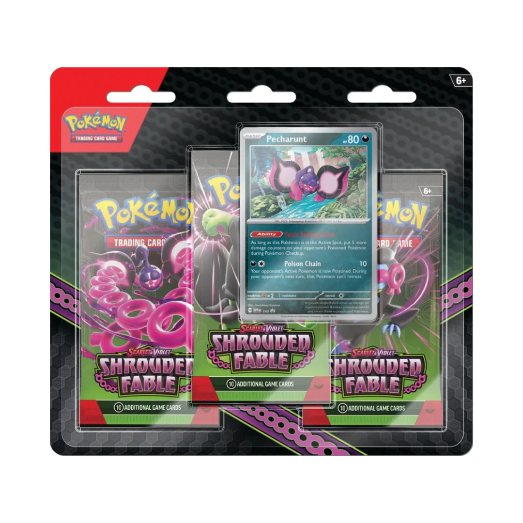 Shadowy secrets and toxic tricks are at your fingertips with the Pokémon TCG: Scarlet & Violet – Shrouded Fable Blister!