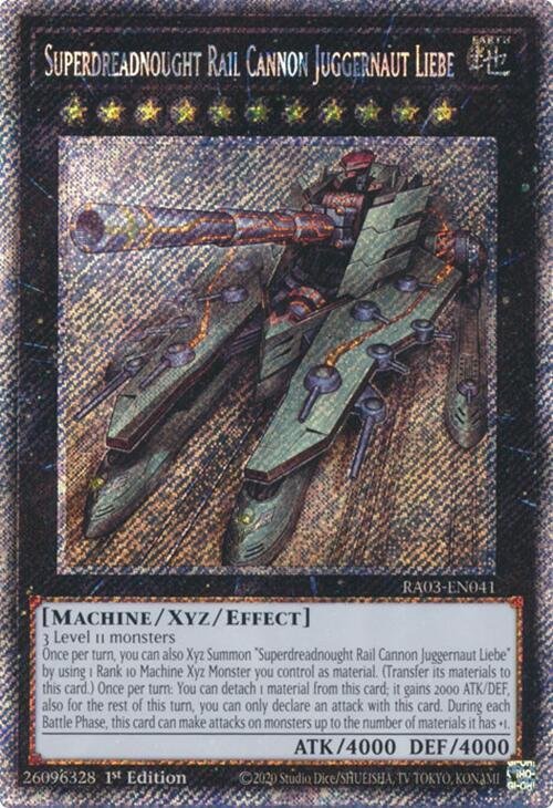Superdreadnought Rail Cannon Juggernaut Liebe - RA03-EN041 (Platinum Secret Rare)Superdreadnought Rail Cannon Juggernaut Liebe – RA03-EN041 (Platinum Secret Rare)